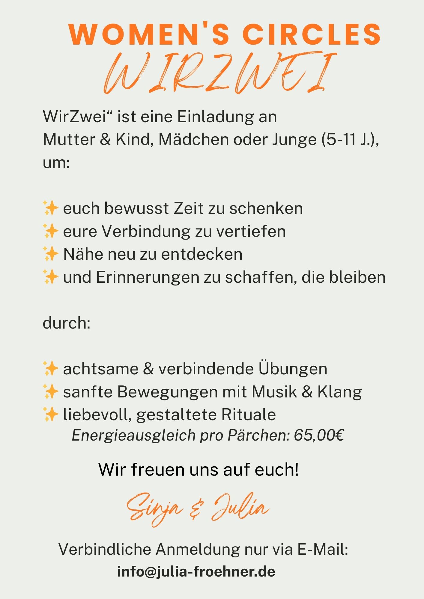 Verbindliche Anmeldung nur über info@julia-froehner.de möglich.